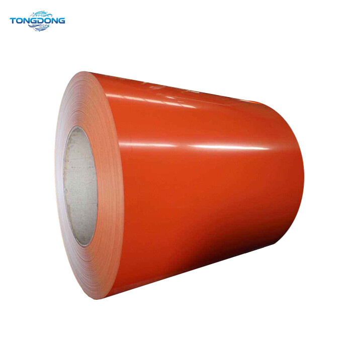 DX54D Color coated steel coil (PPGI)is a product made of cold-rolled steel coil and (aluminum) galvanized steel coil after surface chemical treatment, coating (roll coating) or composite organic film (PVC film, etc.),and then baking and curing. This product is produced by the manufacturer in coils on the continuous production line, so it is also called prepainted steel coil. It not only has the properties of high mechanical strength and easy forming of steel materials, but also has good decoration and corrosion resistance of coating materials.